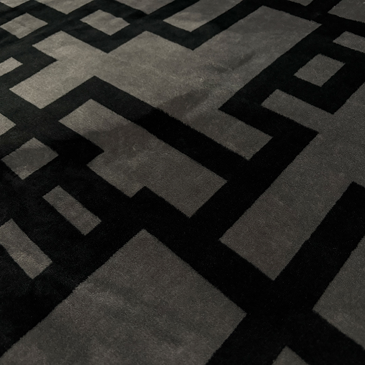 表面は細やかなグラフィックが表現されたスムース系のフリース地、裏面にはふんわりとした滑らかな生地感のG柄フリースを合わせた、二枚生地のリバーシブル・ブランケットです。
