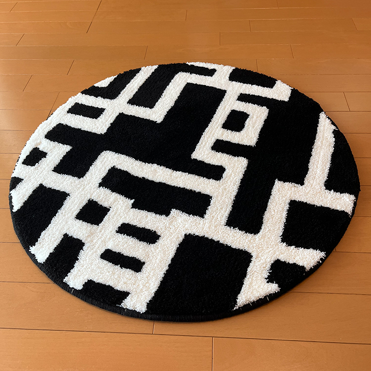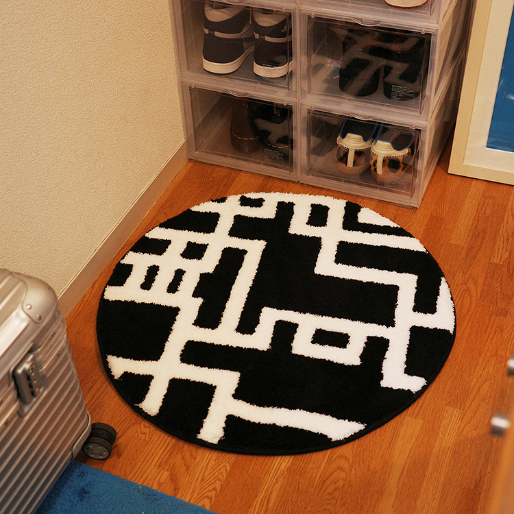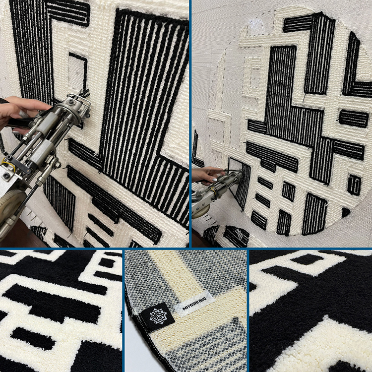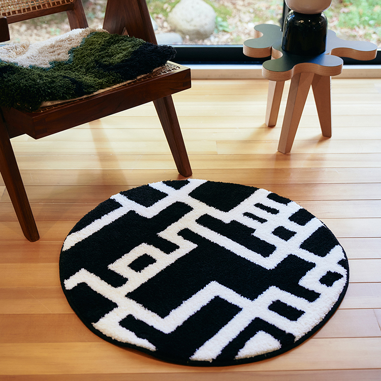 「MIYOSHI RUG」とのコラボレーションによるラグは、タフティングガンと言う手持ちミシンを用いて、1点ずつ手作業で製作するクッション性にも優れたラグマットです。